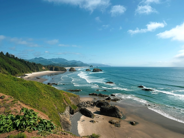 • Explore Oregon’s diverse coast featuring sea stacks and rock formations.